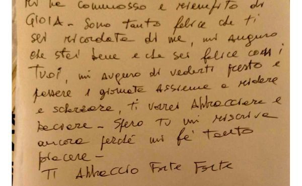 Mi farebbe piacere un giorno venirti a trovare e darti un abbraccio. Questa quarantena mi sta facendo bene, mi sto avvicinando di più con mio fratello, e non litighiamo quasi più e riesco ad allenarmi tutti i giorni e sto capendo il vero valore dell'amicizia.