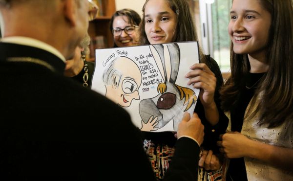 I Portillo hanno meravigliato tutti con un rap che Nacho, di 11 anni, aveva preparato per l’occasione: “Siamo i Portillo e qui stiamo con te. Per te sempre preghiamo, perché una grande responsabilità stai portando. Grazie a te la gente va credendo, grazie a te il cristianesimo va crescendo”.