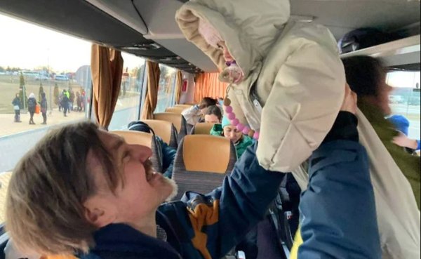 Dalla mattina all’ora di pranzo viaggio assieme agli autobus e al camion della Scuola di Giustizia che portano aiuti alla frontiera. Per strada recitiamo il santo Rosario. Alla fermata di Hrubieszów, prendiamo su le prime tre mamme con i loro bambini. Impariamo i loro nomi, parliamo con loro, scherziamo. Danilo ha 2 anni, il piccolo Kozak Marko ne ha 5, e Swieta è un’adolescente. Arriviamo al crocevia di Dolhobyczow. Lì troviamo diverse centinaia di persone che aspettano un trasporto. Prima prendiamo con noi le mamme che hanno bambini in carrozzina. Chiediamo se in Polonia hanno un alloggio dove possono sistemarsi. L’autobus si riempie rapidamente, e lo stesso gli altri autobus che sono venuti con noi.