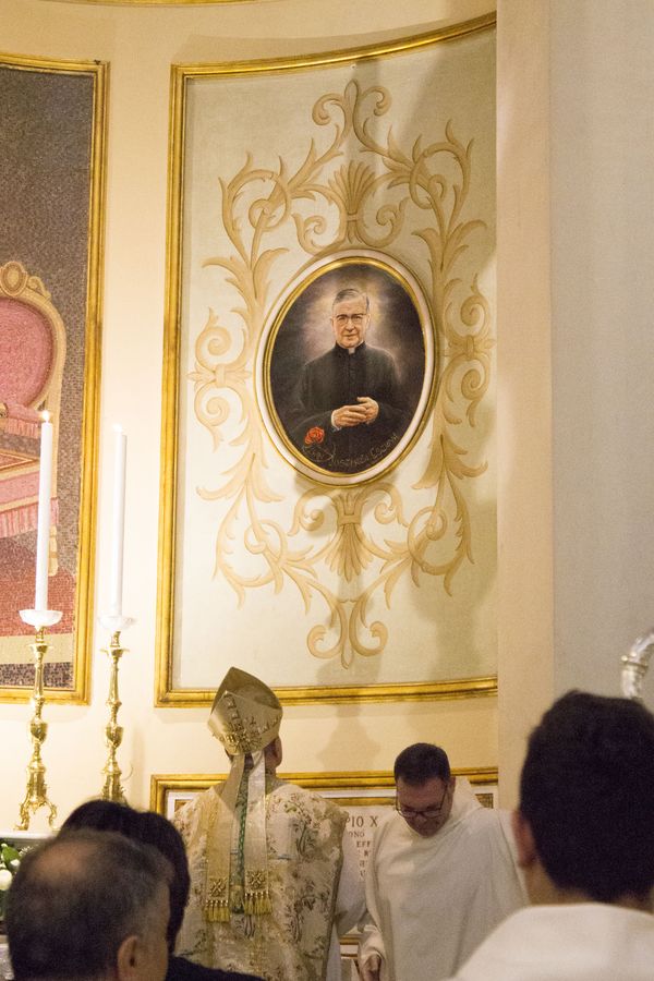 Martedi 27 giugno durante la celebrazione della Messa nella memoria di san Josemaría, nella Basilica gremita da fedeli dell’Opus Dei e da cooperatori e amici con le loro famiglie, mons. Salvatore Angerami, vescovo ausiliare di Napoli, ha benedetto le immagini di due santi, che insieme a San Pio X costituiscono una pagina della storia della Chiesa del ‘900 e dei primi anni di questo secolo. Accanto a Papa Sarto, difensore della liturgia e della buona dottrina (suo è il catechismo che fino al Concilio Vaticano II ha educato generazioni di cristiani), è stata posta l’immagine di un altro Papa, san Giovanni Paolo II, che si fermò a pregare in Basilica durante la sua visita pastorale a Napoli domenica 11 novembre 1990 e che pubblicò il Catechismo aggiornato secondo il magistero dell’ultimo concilio.