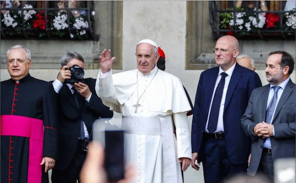 Vi affido a Maria, che qui a Firenze si venera come “Santissima Annunziata”. Nell’affresco che si trova nella omonima Basilica – dove mi recherò tra poco –, l’angelo tace e Maria parla dicendo «Ecce ancilla Domini». In quelle parole ci siamo tutti noi. Sia tutta la Chiesa italiana a pronunciarle con Maria. Grazie.