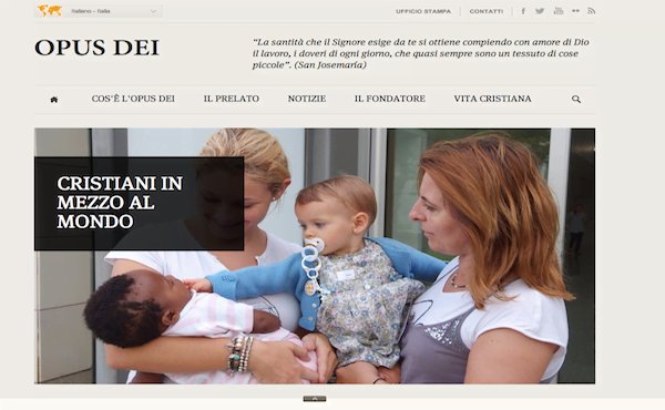 c) Il menù superiore comprende cinque sezioni: Che cos’è l’Opus Dei, Il Prelato, Notizie, Il fondatore, Vita cristiana. Ogni sezione si apre per permettere di entrare nelle varie sottosezioni con i contenuti della pagina. La nuova struttura del website permette di trovare i contenuti in modo semplice e rapido. Inoltre permette di mostrare nelle pagine tutta la ricchezza degli articoli che, negli anni, si sono accumulati.