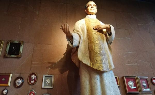 mons. Fernando Ocáriz ha benedetto i bambini battezzati in parrocchia nel 2018 e una statua di san Josemaría