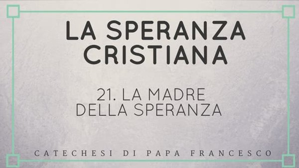 Nel nostro itinerario di catechesi sulla speranza cristiana, oggi guardiamo a Maria, Madre della speranza. Maria ha attraversato più di una notte nel suo cammino di madre. Fin dal primo apparire nella storia dei vangeli, la sua figura si staglia come se fosse il personaggio di un dramma. Non era semplice rispondere con un “sì” all’invito dell’angelo: eppure lei, donna ancora nel fiore della giovinezza, risponde con coraggio, nonostante nulla sapesse del destino che l’attendeva. Maria in quell’istante ci appare come una delle tante madri del nostro mondo, coraggiose fino all’estremo quando si tratta di accogliere nel proprio grembo la storia di un nuovo uomo che nasce.