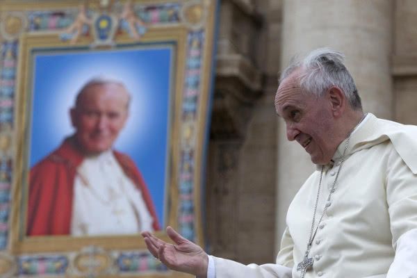E questa è l'immagine di Chiesa che il Concilio Vaticano II ha tenuto davanti a sé. Giovanni XXIII e Giovanni Paolo II hanno collaborato con lo Spirito Santo per ripristinare e aggiornare la Chiesa secondo la sua fisionomia originaria, la fisionomia che le hanno dato i santi nel corso dei secoli. Non dimentichiamo che sono proprio i santi che mandano avanti e fanno crescere la Chiesa. Nella convocazione del Concilio san Giovanni XXIII ha dimostrato una delicata docilità allo Spirito Santo, si è lasciato condurre ed è stato per la Chiesa un pastore, una guida-guidata, guidata dallo Spirito. Questo è stato il suo grande servizio alla Chiesa; per questo a me piace pensarlo come il Papa della docilità allo Spirito Santo.