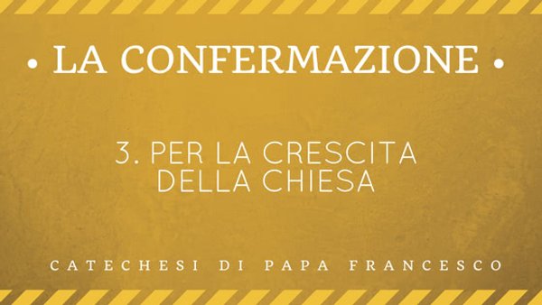 Proseguendo la riflessione sul sacramento della Confermazione, consideriamo gli effetti che il dono dello Spirito Santo fa maturare nei cresimati, portandoli a diventare, a loro volta, un dono per gli altri. È un dono lo Spirito Santo. Ricordiamo che quando il vescovo ci dà l’unzione con l’olio, dice: “Ricevi lo Spirito Santo che ti è dato in dono”. Quel dono dello Spirito Santo entra in noi e fa fruttificare, perché noi poi possiamo darlo agli altri. Sempre ricevere per dare: mai ricevere e tenere le cose dentro, come se l’anima fosse un magazzino. No: sempre ricevere per dare. Le grazie di Dio si ricevono per darle agli altri. Questa è la vita del cristiano. È proprio dello Spirito Santo, dunque, decentrarci dal nostro io per aprirci al “noi” della comunità: ricevere per dare. Non siamo noi al centro: noi siamo uno strumento di quel dono per gli altri.