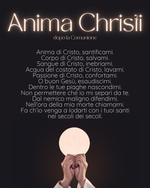 Anima di Cristo, santificami. Corpo di Cristo, salvami. Sangue di Cristo, inebriami.
