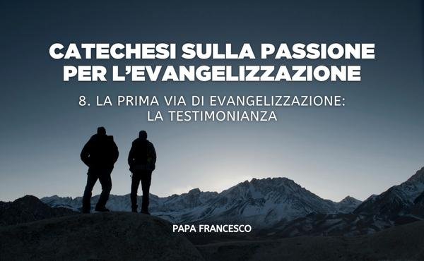 Oggi ci mettiamo in ascolto della “magna carta” dell’evangelizzazione nel mondo contemporaneo: l’Esortazione apostolica Evangelii nuntiandi di San Paolo VI (EN, 8 dicembre 1975). È attuale, è stata scritta nel 1975, ma è come se fosse scritta ieri. L’evangelizzazione è più che una semplice trasmissione dottrinale e morale. È prima di tutto testimonianza: non si può evangelizzare senza testimonianza; testimonianza dell’incontro personale con Gesù Cristo, Verbo Incarnato nel quale la salvezza si è compiuta. Una testimonianza indispensabile perché, anzitutto, il mondo ha bisogno di «evangelizzatori che gli parlino di un Dio che essi conoscano e che sia loro familiare» (EN, 76). Non è trasmettere un’ideologia o una “dottrina” su Dio, no. È trasmettere Dio che si fa vita in me: questo è testimonianza; e inoltre perché «l’uomo contemporaneo ascolta più volentieri i testimoni che i maestri, […] o se ascolta i maestri lo fa perché sono dei testimoni» (ibid., 41). La testimonianza di Cristo, dunque, è al tempo stesso il primo mezzo dell’evangelizzazione (cfr ibid.) e condizione essenziale per la sua efficacia (cfr ibid., 76), perché sia fruttuoso l’annuncio del Vangelo. Essere testimoni.