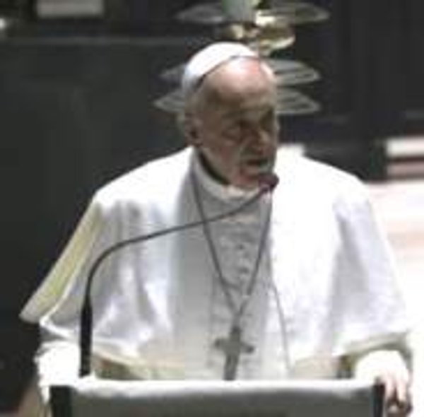 Va bene; vi ringrazio per questa vicinanza. Mi dispiace che siate ingabbiati, però vi dico una cosa. Io, ogni tanto, lo sperimento: che brutta cosa è essere ingabbiati. Ve lo confesso di cuore, ma vediamo… Vi capisco. Mi sarebbe piaciuto esservi più vicino, ma comprendo che, per ragioni di sicurezza, non si può. Grazie per essere venuti, grazie per pregare per me; ve lo chiedo di cuore, ne ho bisogno. Ho bisogno delle vostre preghiere, ne ho tanto bisogno. Grazie per questo. Ebbene, vi voglio dare la Benedizione e dopo benediremo l’immagine della Vergine che percorrerà tutta la Repubblica… e la croce di San Francesco, che viaggeranno missionariamente. Ma non dimenticate: fatevi sentire; abbiate cura dei due estremi della vita, i due estremi della storia dei popoli, che sono gli anziani e i giovani; e non frullate la fede. E adesso preghiamo, per benedire l’immagine della Vergine e darvi poi la Benedizione.
