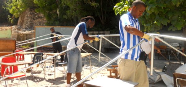 La prima notte Haiti ci ha ricevuti con una tempesta così forte che ben presto le nostre tende sono state inondate dall’acqua. Ogni mattina cominciavamo la giornata con la Santa Messa e un tempo di preghiera. Poi, prima colazione e al lavoro. Il nostro primo compito è stato quello di smontare le tende di campeggio che l’UNICEF aveva sistemato come aule provvisorie e che ormai non servivano più.