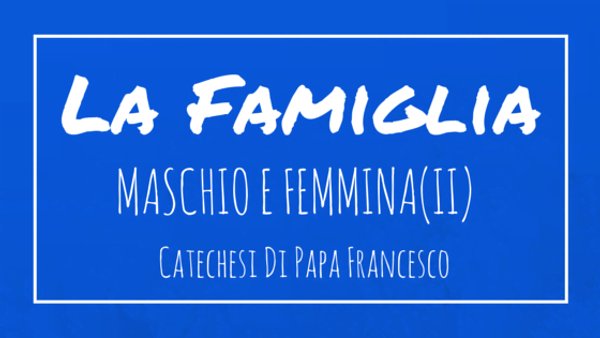 nella precedente catechesi sulla famiglia, mi sono soffermato sul primo racconto della creazione dell'essere umano, nel primo capitolo della Genesi, dove sta scritto: «Dio creò l'uomo a sua immagine: a immagine di Dio lo creò; maschio e femmina li creò» (1,27).
