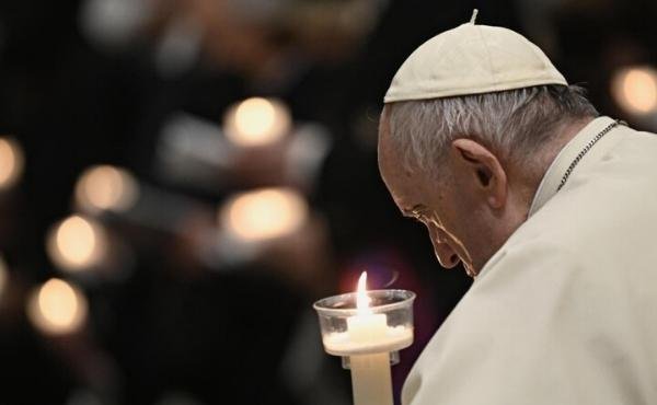 Molti scrittori hanno evocato la bellezza delle notti illuminate dalle stelle. Invece le notti di guerra sono solcate da scie luminose di morte. In questa notte, fratelli e sorelle, lasciamoci prendere per mano dalle donne del Vangelo, per scoprire con loro il sorgere della luce di Dio che brilla nelle tenebre del mondo. Quelle donne, mentre la notte si diradava e le prime luci dell’alba spuntavano senza clamori, si recarono al sepolcro per ungere il corpo di Gesù. E lì vivono un’esperienza sconvolgente: prima scoprono che la tomba è vuota; quindi vedono due figure in vesti sfolgoranti, le quali dicono loro che Gesù è risorto; e subito corrono ad annunciare la notizia agli altri discepoli (cfr Lc 24,1-10). Vedono, ascoltano, annunciano: con queste tre azioni entriamo anche noi nella Pasqua del Signore.