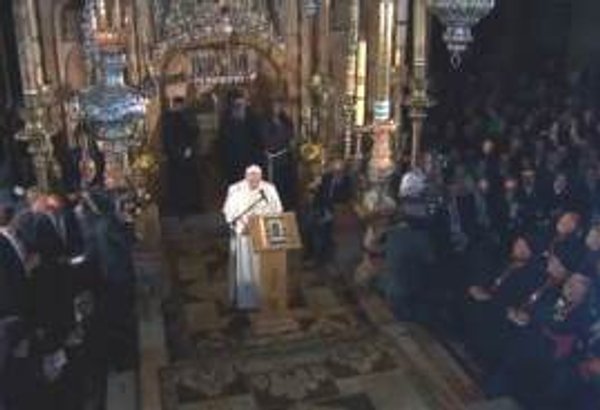 in questa Basilica, alla quale ogni cristiano guarda con profonda venerazione, raggiunge il suo culmine il pellegrinaggio che sto compiendo insieme con il mio amato fratello in Cristo, Sua Santità Bartolomeo. Lo compiamo sulle orme dei nostri venerati predecessori, il Papa Paolo VI e il Patriarca Atenagora, i quali, con coraggio e docilità allo Spirito Santo, diedero luogo cinquant’anni fa, nella Città santa di Gerusalemme, allo storico incontro tra il Vescovo di Roma e il Patriarca di Costantinopoli. Saluto cordialmente tutti voi presenti. In particolare, ringrazio vivamente per avere reso possibile questo momento Sua Beatitudine Teofilo, che ha voluto rivolgerci gentili parole di benvenuto, come pure a Sua Beatitudine Nourhan Manoogian e al Reverendo Padre Pierbattista Pizzaballa.