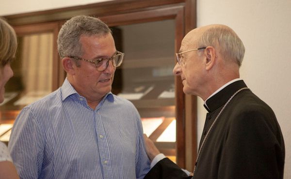 Javier, fratello maggiore di Teresa, con mons. Ocáriz, prelato dell’Opus Dei.