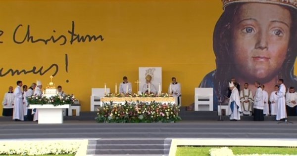 Rendo grazie anche alla Santissima Vergine, dalla cui mediazione materna ci arrivano tutti i doni del Cielo. Prego la Madre di Dio e Madre nostra di continuare a intercedere per tutti, per ciascuna e per ciascuno, affinché percorriamo sino alla fine la nostra via di santificazione. La supplichiamo in modo particolare per le nostre sorelle e i nostri fratelli che, in diverse parti del mondo, subiscono la persecuzione e anche il martirio a causa della fede.