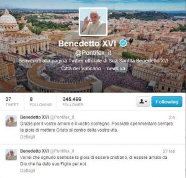 "Grazie per il vostro amore e il vostro sostegno. Possiate sperimentare sempre la gioia di mettere Cristo al centro della vostra vita." Queste sono le ultime parole di Benedetto XVI nel tweet di @pontifex, cinque minuti prima di abbandonare la Città del Vaticano per Castelgandolfo.