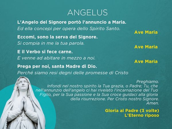 Infondi nel nostro spirito la tua grazia, o Padre, tu che all’annuncio dell’Angelo ci hai rivelato l’incarnazione del tuo Figlio, per la sua passione e la sua croce guidaci alla gloria della risurrezione. Per Cristo nostro Signore. R/. Amen.