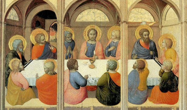 E preso un calice, rese grazie e disse: “Prendetelo e distribuitelo tra voi, poiché vi dico: da questo momento non berrò più del frutto della vite, finché non venga il regno di Dio”. Poi, preso un pane, rese grazie, lo spezzò e lo diede loro dicendo: “Questo è il mio corpo che è dato per voi; fate questo in memoria di me”. Allo stesso modo dopo aver cenato, prese il calice dicendo: “Questo calice è la nuova alleanza nel mio sangue, che viene versato per voi” (Lc 22, 14-20).
