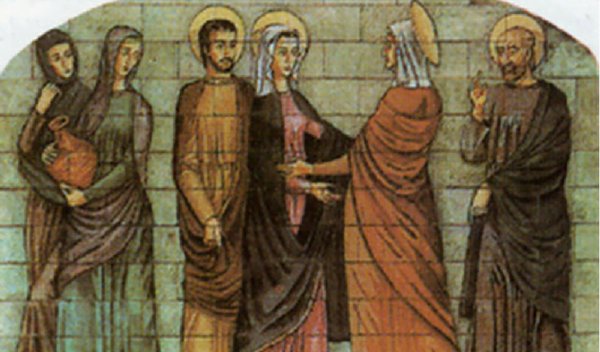“Benedetta tu fra le donne, e benedetto il frutto del tuo grembo! A che debbo che la madre del mio Signore venga a me? Ecco, appena la voce del tuo saluto è giunta ai miei orecchi, il bambino ha esultato di gioia nel mio grembo. E beata colei che ha creduto nell’adempimento delle parole del Signore”.