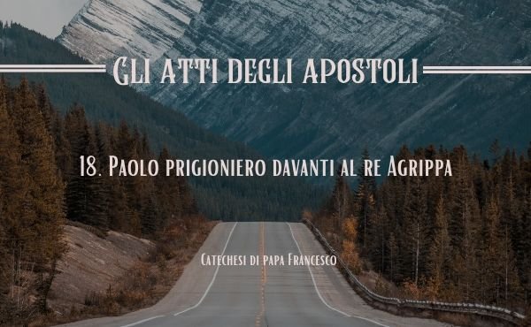 Poi Paolo racconta la propria conversione: Cristo Risorto lo ha reso cristiano e gli ha affidato la missione tra le genti, «perché si convertano dalle tenebre alla luce e dal potere di Satana a Dio, e ottengano il perdono dei peccati e l’eredità, in mezzo a coloro che sono stati santificati per la fede» in Cristo (v. 18). Paolo ha obbedito a questo incarico e non ha fatto altro che mostrare come i profeti e Mosè hanno preannunciato ciò che egli ora annuncia: che «il Cristo avrebbe dovuto soffrire e che, primo tra i risorti da morte, avrebbe annunciato la luce al popolo e alle genti» (v. 23). La testimonianza appassionata di Paolo tocca il cuore del re Agrippa, a cui manca solo il passo decisivo. E dice così, il re: «Ancora un poco e mi convinci a farmi cristiano!» (v. 28). Paolo viene dichiarato innocente, ma non può essere rilasciato perché si è appellato a Cesare. Continua così il viaggio inarrestabile della Parola di Dio verso Roma. Paolo, incatenato, finirà qui a Roma.