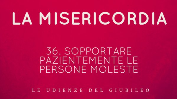 Dedichiamo la catechesi di oggi a un’opera di misericordia che tutti conosciamo molto bene, ma che forse non mettiamo in pratica come dovremmo: sopportare pazientemente le persone moleste. Siamo tutti molto bravi nell’identificare una presenza che può dare fastidio: succede quando incontriamo qualcuno per la strada, o quando riceviamo una telefonata... Subito pensiamo: “Per quanto tempo dovrò sentire le lamentele, le chiacchiere, le richieste o le vanterie di questa persona?”. Succede anche, a volte, che le persone fastidiose sono quelle più vicine a noi: tra i parenti c’è sempre qualcuno; sul posto di lavoro non mancano; e neppure nel tempo libero ne siamo esenti. Che cosa dobbiamo fare con le persone moleste? Ma anche noi tante volte siamo molesti agli altri. Perché tra le opere di misericordia è stata inserita anche questa? Sopportare pazientemente le persone moleste?