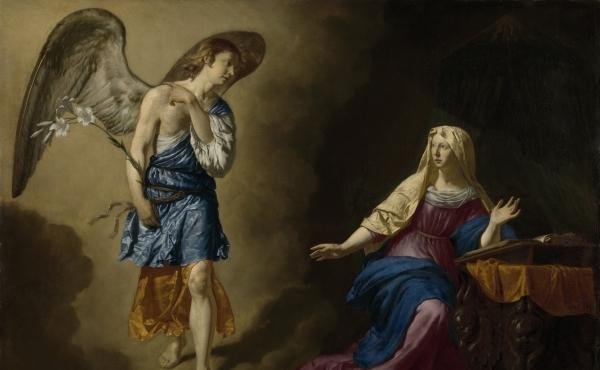 L'ARCANGELO SAN GABRIELE ha una delicata missione da compiere. Il momento è arrivato. Dio ha posato lo sguardo su una fanciulla di Nazaret per portare a compimento l’appassionante storia della salvezza dei suoi figli. Il messaggero saluta la piena di grazia e tutta la creazione trattiene il respiro. «A queste parole ella fu molto turbata e si domandava che senso avesse un saluto come questo» (Lc 1, 29). Molte rappresentazioni artistiche hanno immaginato che nostra Madre stesse leggendo la Sacra Scrittura quando ricevette il saluto dell'angelo; ed è questa attitudine di meditazione che probabilmente permette a Santa Maria di rimanere in quel dialogo costante con Dio, in quella considerazione permanente delle cose, che è la vita di preghiera.