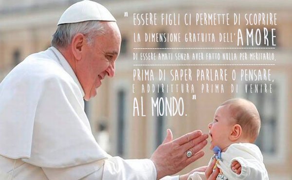 7. “Essere figli ci permette di scoprire la dimensione gratuita dell'amore, di essere amati senza aver fatto nulla per meritarlo, prima di saper parlare o pensare, e addirittura prima di venire al mondo. È un'esperienza fondamentale per conoscere l'amore di Dio”. Udienza Generale, 11 febbraio 2015.8. “Una società che rifiuta gli anziani è una società senza dignità, perde le sue radici e appassisce; una società che non si circonda di figli, che li considera un problema, un peso, non ha futuro”. Udienza Generale, 11 febbraio 2015.