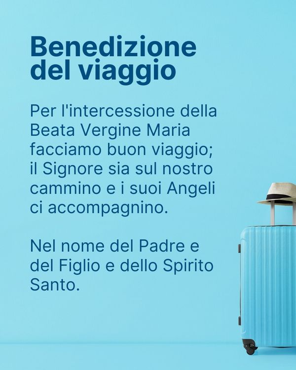 Per l'intercessione dell Beata Maria Vergine facciamo buon viaggio; il Signore sia sui nostri passi e i suoi angeli ci accompagnino. Nel nome del Padre, del Figlio e dello Spirito Santo.