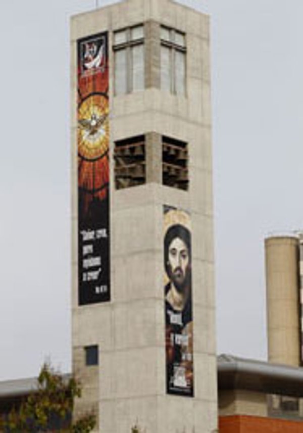 Uno degli striscioni rappresenta lo Spirito Santo e riporta il versetto di San Marco 9,24 "Signore credo, ma aiuta la mia incredulità!" Un altro riporta un'icona del Signore e la citazione di Giovanni 1, 39 "Venite e vedrete"; il terzo riporta un'immagine della Madonna con la frase "Fede: luce, sicurezza, calore".