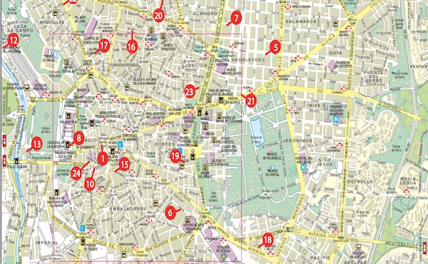 settimana dal 22 al 29 settembre e una cartina di Madrid, per localizzare ciascuna di esse.