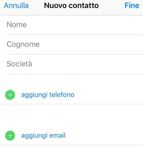 Dopo aver cliccato su NUOVO CONTATTO passerete a una schermata con una serie di campi vuoti da riempire.