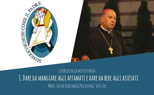 Gesù Cristo, volto della misericordia del Padre, ci offre l’alimento del suo Corpo e del suo Sangue sotto le apparenze di pane e di vino, dandoci così una partecipazione alla vita eterna. Imitiamolo: noi non possiamo arrivare a una donazione di tale importanza, ma abbiamo la possibilità di dar da mangiare e da bere ai membri del Corpo mistico di Cristo, invitandoli ad avvicinarsi all’Eucaristia e anche ad altri aiuti materiali.