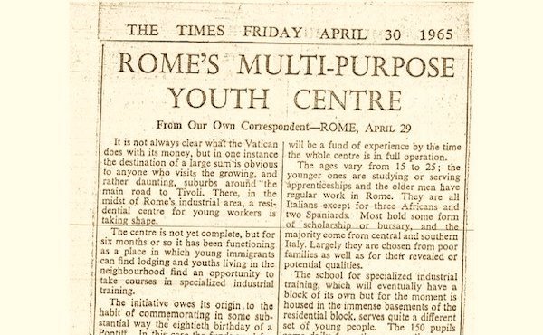 Il centro ELIS (Educazione, Lavoro, Istruzione e Sport) di Roma era stato voluto da papa san Giovanni XXIII e la sua realizzazione affidata all’Opus Dei. Sin dalla sua nascita verrà seguito da vicino da san Josemaría e successivamente inaugurato da papa san Paolo VIproprio pochi mesi dopo la pubblicazione di questo articolo del Times.