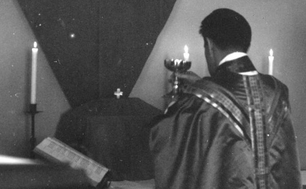 Al mattino, devono affrontare operai e capocantiere per giustificare il loro gesto ma prima di farlo decidono di chiedere a don Mario, l'allora parroco dell'adiacente parrocchia di san Giovanni Battista in Collatino, di celebrare la Santa Messa. Predispongono un piccolo altare portatile allestito in modo semplice: fanno il segno della croce e così nasce la prima Cappella del Santissimo.