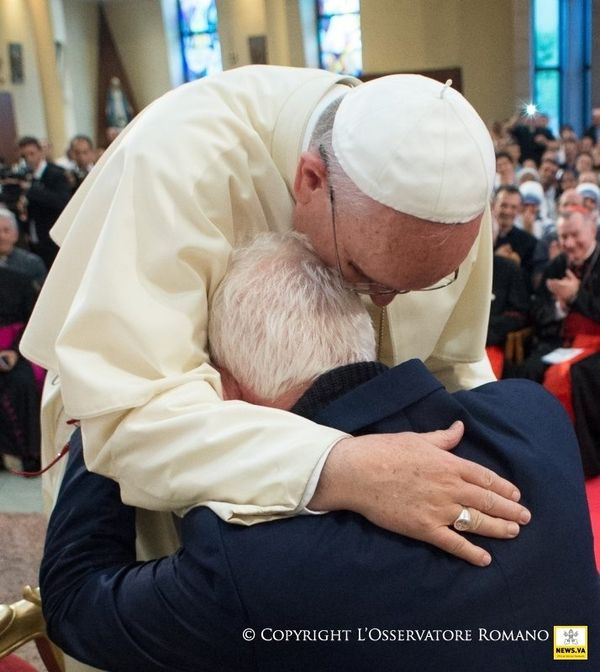 Ho preparato alcune parole per voi, da dirvi, e le consegnerò all’Arcivescovo perché lui dopo ve lo faccia arrivare. La traduzione è già fatta. Si può fare arrivare. Ma adesso, mi è venuto di dirvi un’altra cosa… Abbiamo sentito nella Lettura: “Sia benedetto Dio, Padre del Signore nostro Gesù Cristo, Padre misericordioso e Dio di ogni consolazione, il quale ci consola in ogni nostra tribolazione, perché possiamo anche noi consolare quelli che si trovano in qualsiasi genere di afflizione, con la consolazione stessa con la quale siamo stati consolati noi da Dio” (2 Cor 1,3-4). E’ il testo su cui oggi la Chiesa ci fa riflettere nei Vespri. In questi due mesi, mi sono preparato per questa visita, leggendo la storia della persecuzione in Albania. E per me è stata una sorpresa: io non sapevo che il vostro popolo avesse sofferto tanto! Poi, oggi, nella strada dall’aeroporto fino alla piazza, tutte queste fotografie dei martiri: si vede che questo popolo ancora ha memoria dei suoi martiri, di quelli che hanno sofferto tanto! Un popolo di martiri… E oggi, all’inizio di questa celebrazione, ne ho toccati due. Quello che io posso dirvi è quello che loro hanno detto, con la loro vita, con le loro parole semplici… Raccontavano le cose con una semplicità… ma tanto dolorosa! E noi possiamo domandare a loro: “Ma come avete fatto a sopravvivere a tanta tribolazione?”. E ci diranno questo che abbiamo sentito in questo brano della Seconda Lettera ai Corinzi: “Dio è Padre misericordioso e Dio di ogni consolazione. E’ stato Lui a consolarci!”. Ce lo hanno detto con questa semplicità. Hanno sofferto troppo. Hanno sofferto fisicamente, psichicamente, e anche quell’angoscia dell’incertezza: se sarebbero stati fucilati o no, e vivevano così, con quell’angoscia. E il Signore li consolava… Penso a Pietro, nel carcere, incatenato, con le catene; tutta la Chiesa pregava per lui. E il Signore consolò Pietro. E i martiri, e questi due che abbiamo sentito oggi, il Signore li consolò perché c’era gente nella Chiesa, il popolo di Dio - le vecchiette sante e buone, tante suore di clausura… - che pregavano per loro. E questo è il mistero della Chiesa: quando la Chiesa chiede al Signore di consolare il suo popolo; e il Signore consola umilmente, anche nascostamente.