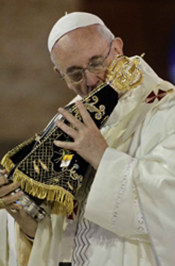 Quanta gioia mi dà venire alla casa della Madre di ogni brasiliano, il Santuario di Nostra Signora di Aparecida! Il giorno dopo la mia elezione a Vescovo di Roma ho visitato la Basilica di Santa Maria Maggiore a Roma, per affidare alla Madonna il mio ministero. Oggi ho voluto venire qui per chiedere a Maria nostra Madre il buon esito della Giornata Mondiale della Gioventù e mettere ai suoi piedi la vita del popolo latinoamericano.