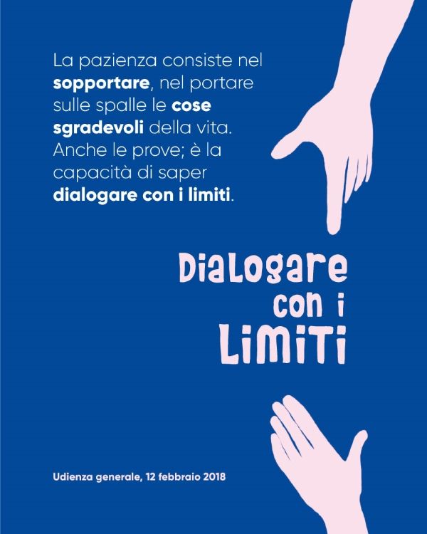 1. La pazienza consiste nel sopportare, nel portare sulle spalle le cose sgradevoli della vita. Anche le prove; è la capacità di saper dialogare con i limiti (Meditazione a Santa Marta del 12 febbraio 2018).
