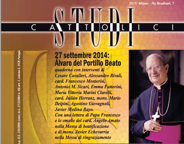 I colori e le emozioni di quel giorno sono ricostruiti da Alessandro Rivali (p. 660), seguono i «documenti» dell'indimenticabile cerimonia: la lettera di Papa Francesco (p. 668), l'omelia del card. Angelo Amato (p. 669), che ha presieduto la liturgia, e quella di mons. Javier Echevarría alla Messa di ringraziamento (p. 672). La seconda parte dello «speciale» racconta la doppia presentazione dell'accuratissimo profilo che Javier Medina ha dedicato al nuovo Beato (Àlvaro del Portillo, Ares, Milano 2014): alla Pontificia Università della Santa Croce di Roma sono intervenuti il card. Francesco Monterisi (p. 675), l'agiografo Antonio Maria Sicari (p. 679), la senatrice Emma Fattorini (p. 683) e Maria Vittoria Marini Clarelli (p. 685), soprintendente alla GNAM. La tavola rotonda milanese presso il Teatro FAES stata animata dal card. Herranz (p.688), mons. Mario Delpini (p. 692), il prof. Agostino Giovagnoli (p. 693) e lo stesso Javier Medina Bajo (p. 695).