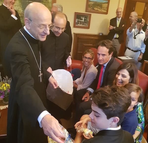 Giovedì 31 maggio mons. Fernando Ocáriz è arrivato all'aeroporto Falcone e Borsellino di Punta Raisi, dove è stato accolto da una piccola delegazione di persone dell’Opus Dei della Sicilia. Fuori dall'aeroporto il prelato dell’Opus Dei e le persone che lo accompagnavano hanno trovato alcune famiglie giunte lì proprio per regalare a mons. Fernando Ocáriz una piccola festa.