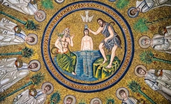 Poiché il popolo era in attesa e tutti, riguardo a Giovanni, si domandavano in cuor loro se non fosse lui il Cristo, Giovanni rispose a tutti dicendo: «Io vi battezzo con acqua; ma viene colui che è più forte di me, a cui non sono degno di slegare i lacci dei sandali. Egli vi battezzerà in Spirito Santo e fuoco». (…) Ed ecco, mentre tutto il popolo veniva battezzato e Gesù, ricevuto anche lui il battesimo, stava in preghiera, il cielo si aprì e discese sopra di lui lo Spirito Santo in forma corporea, come una colomba, e venne una voce dal cielo: «Tu sei il Figlio mio, l'amato: in te ho posto il mio compiacimento».