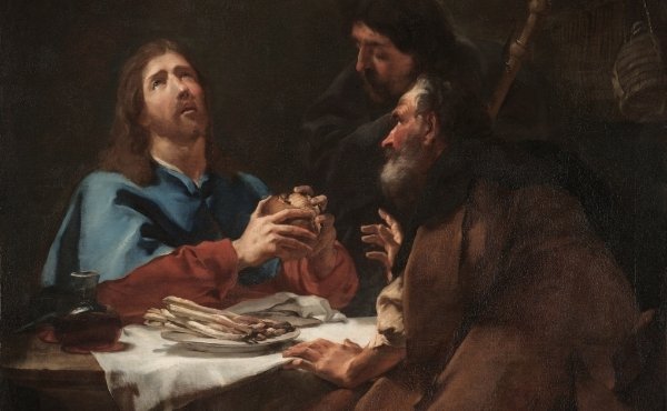 «Resta con noi, Signore», gli dissero, quando Gesù «fece come se dovesse andare più lontano». I due, pur non sapendo ancora con chi erano, non volevano perdere la sua compagnia e lo supplicano di non andarsene. Gesù si fermò, entrò con loro nella casa, si sedette a tavola, «prese il pane, recitò la benedizione, lo spezzò e lo diede loro» (Lc 24, 30). Così era solito fare con i suoi discepoli e così aveva fatto anche nell’ultima cena. In quel momento i loro occhi si aprirono del tutto e lo riconobbero «nella frazione del pane». Forse scoprirono per la prima volta le ferite delle sue mani, coperte dal mantello. Allora Gesù sparì dalla loro vista, «lasciandoli pieni di meraviglia dinanzi a quel pane spezzato, nuovo segno della sua presenza»[7].
