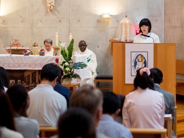 長崎の精道三川台小・中・高等学校の聖堂では、硲神父がミサを立てました。その後、参加者は簡単なお祝いを楽しみました。