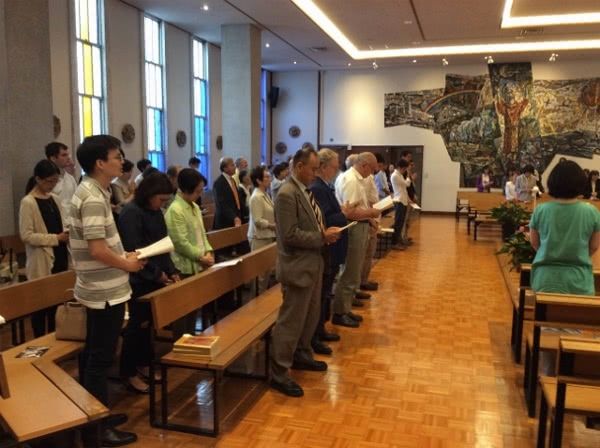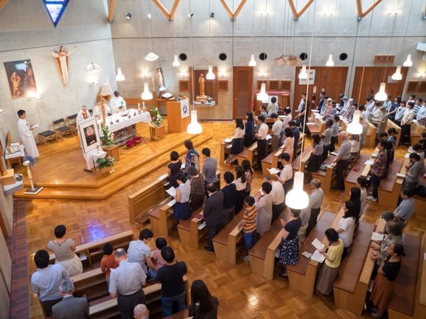 京都の北白川教会では、笹野神父、中島神父、ウィリアム神父によってミサが立てられました。説教では、教皇フランシスコが出された使徒的勧告『愛の喜び』について、また、聖ホセマリアが教えた日常生活における聖性は、まさに家庭において実践されるべきことが語られました。オリンピックが開催される今年、選手たちが金メダルを目指すように、それぞれが聖性の金メダルを目指すよう励まし、「あなたが金メダルを目指すのは、『リオでじゃねーよ、家庭だよ』」と締めくくりました。