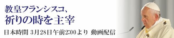次の金曜日、3月27日の18時(日本時間28日午前2時)には、同じ意向のために、聖ペトロ大聖堂の前庭で、無人の広場を前に、祈りの時を主宰します。コミュニケーション・メディアを通して、この時刻から霊的に参加するようお願いしたいと思います。わたしたちは神のことばを聞き、祈りをささげ、聖体礼拝を行います。その後、わたしは「ローマと全世界へ(ウルビ・エト・オルビ)」の祝福を送ります。その祝福によって、全免償(注)を受ける可能性が付与されます。