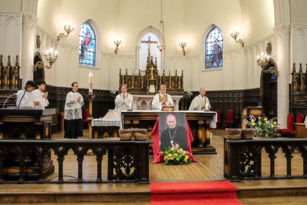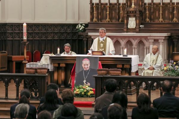 1月14日(土)、カトリック夙川教会において、オプス・デイ属人区長・故ハビエル・エチェバリーア司教の追悼ミサが捧げられました。司式は日本総代理・新田壮一郎師、共同司式者には、主任司祭・梅原彰師も共に祈ってくださいました。ミサの中での説教では、すべての人に愛情を注いだエチェバリーア司教の逸話も紹介されました。寒い中にもかかわらず、大勢の方々が参列し共に祈ってくださいました。