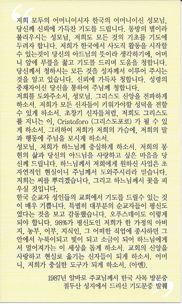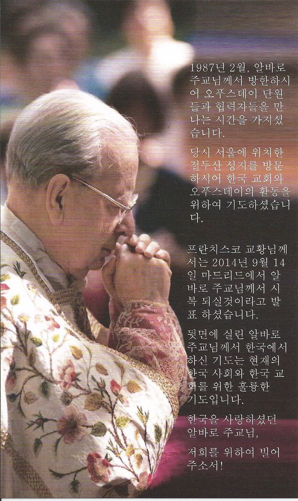 2014년 시복식부터 매년 5월 12일 시복식을 기점으로 매년 5월 12일은 복자 알바로 델 포르티요 주교님의 기념일입니다. 아래 기도는 1987년 한국에 방문하셨을 때 기도입니다. 복자 알바로 주교, 저희를 위하여 빌어주소서!
