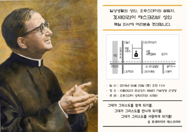 한국에서 호세마리아 성인의 축일을 기념하며 드리는 감사미사가 봉헌 될 것입니다.
