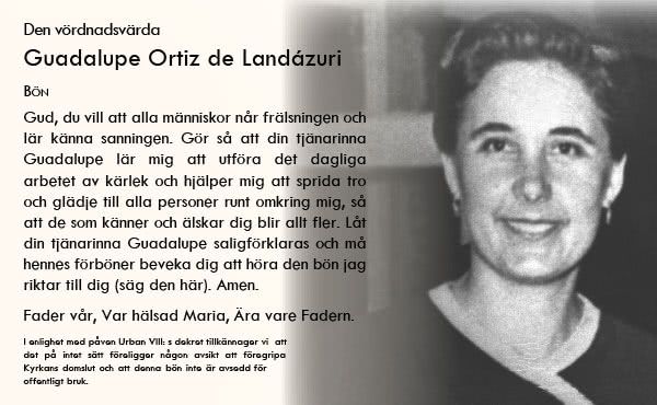 8. juni 2018 erklærte pave Frans, etter å ha mottatt en redegjørelse om alt det som er beskrevet her fra kardinal Angelo Amato som er prefekt for Kongregasjonen for helligkåringer, at det finnes bevis for et mirakel som Gud utførte, på Guds ærverdige tjenerinne Guadalupe Ortiz de Landázuris forbønn.