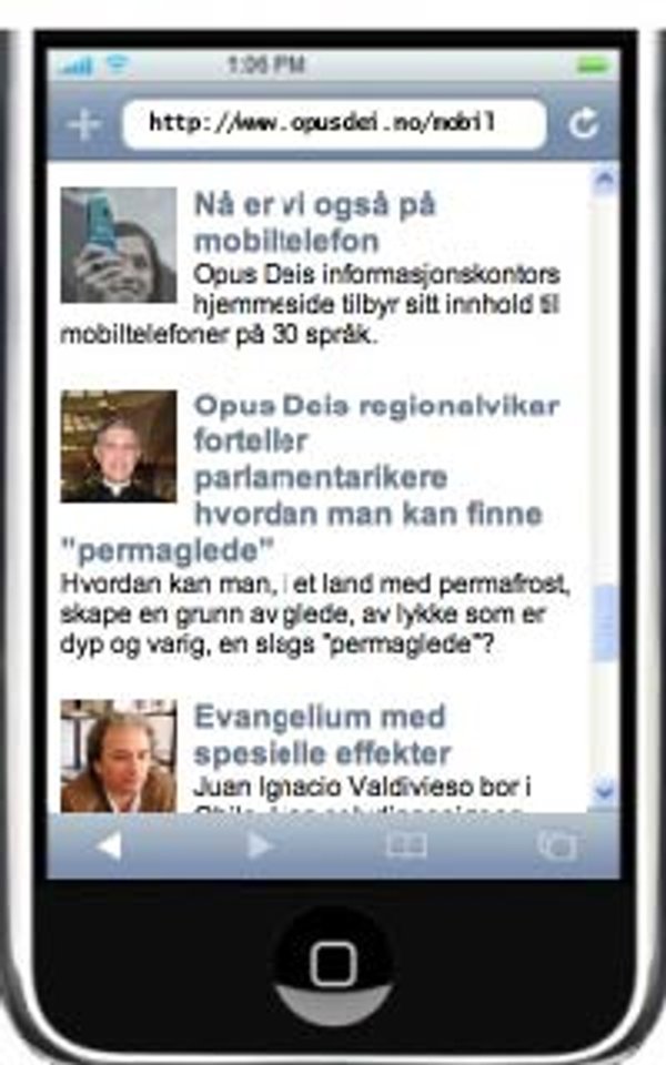 Mange mennesker, spesielt unge, har en stund bedt om å få hjemmesiden disponibel på mobiltelefoner og håndholdt PC. Mobilversjonen lages fortløpende og inneholder noen av de mest leste seksjonene fra Opus Deis hjemmeside. Adressen man skal bruke for å komme inn på mobilutgaven er https://www.opusdei.mobi eller https://opusdei.org/mobile.