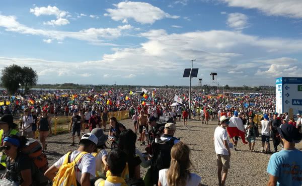 Met de kilometers en de opeenvolgende dagreizen, werden de groepen voor Krakau altijd talrijker en meer zichtbaar, om dan bij de aankomst ter bestemming de traditionele bonte en vrolijke menigte deelnemers van de ganse wereld terug te vinden. Zoals een der deelnemers het zei “dat doet echt goed te zien dat wij niet alleen zijn, dat zoveel andere jongeren ook de oproep van de paus om Christus te volgen, beantwoorden”.